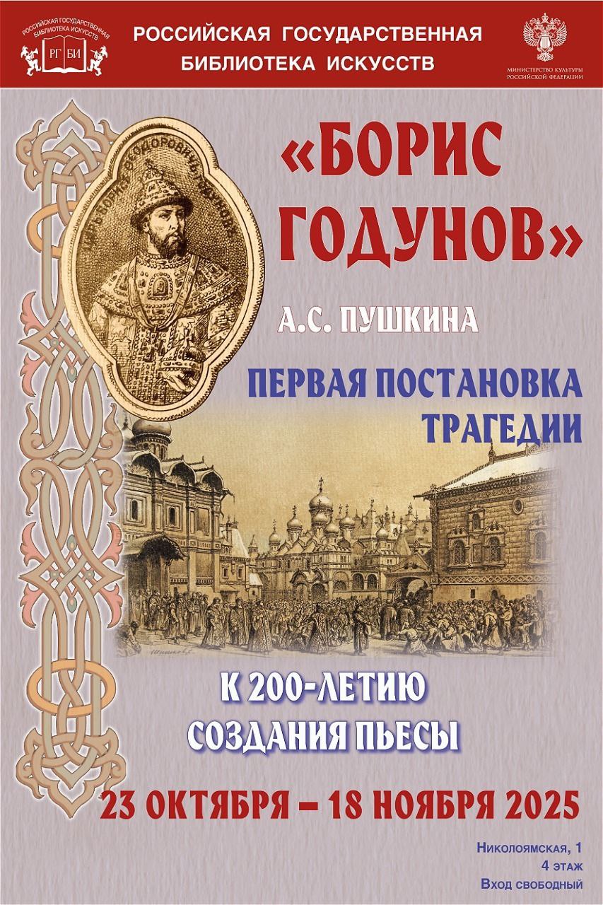 Российская государственная библиотека искусств в год 200-летия создания А.С. Пушкиным первой драмы из отечественной истории, одного из самых любимых сочинений автора, проводит выставку «”Борис Годунов” А.С. Пушкина. Первая постановка трагедии».