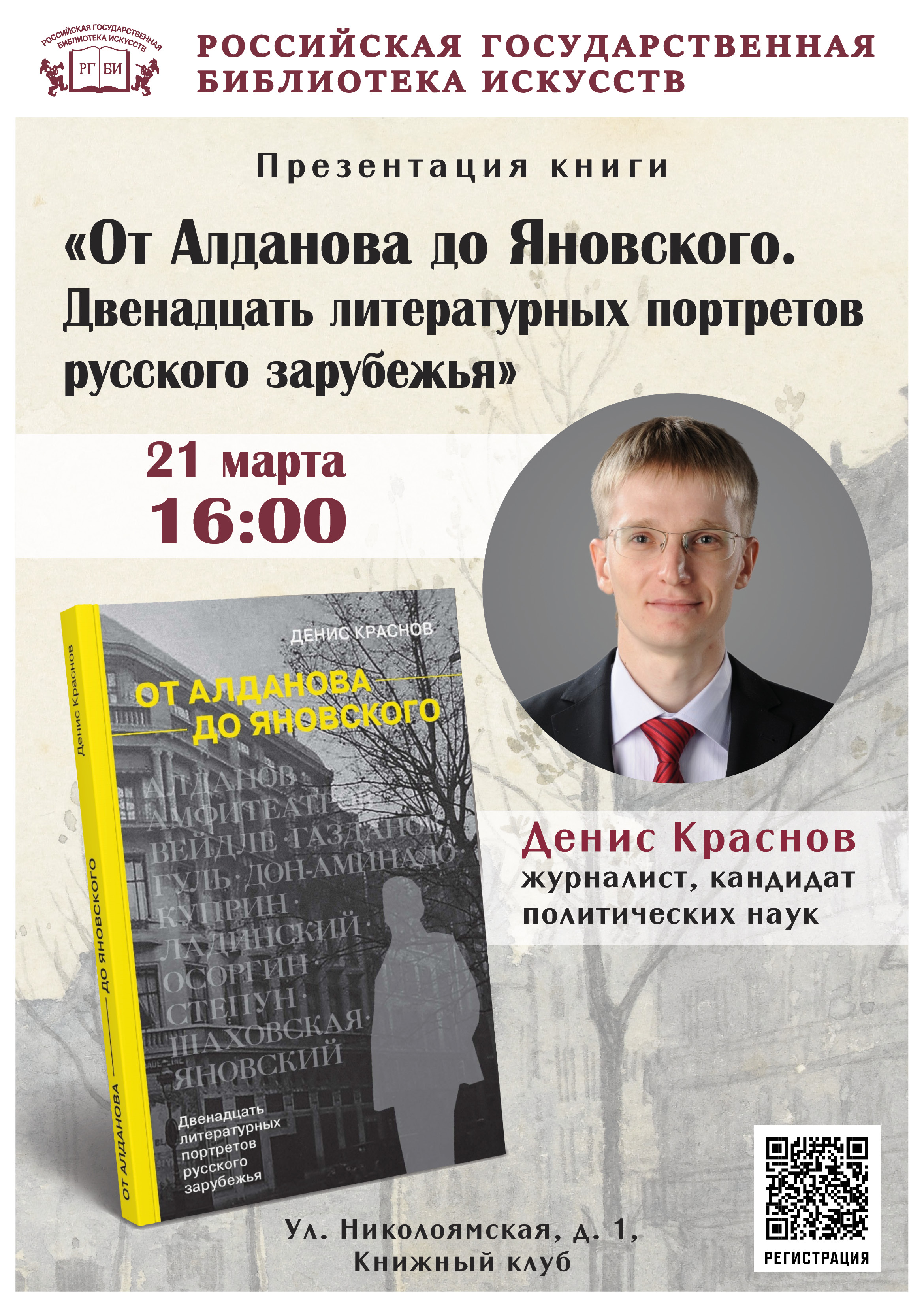 Журналист, кандидат политических наук Денис Краснов представит сборник очерков о писателях первой волны русской эмиграции.